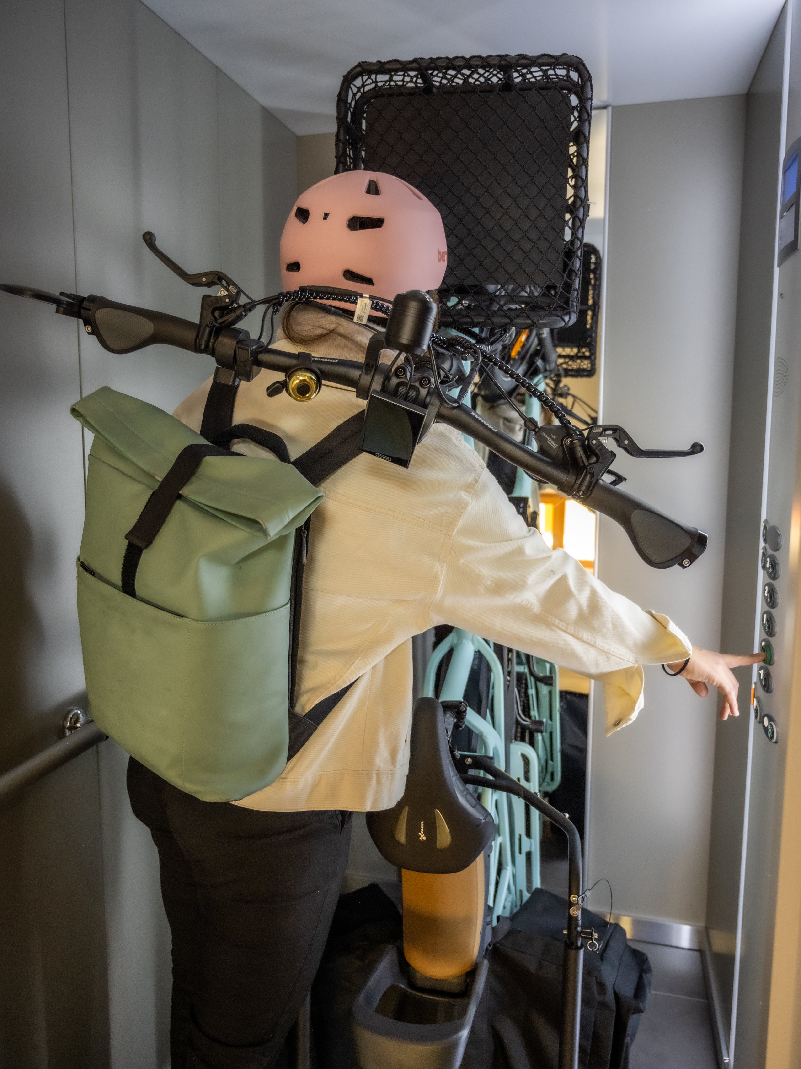 Wendig, leicht und kompakt: Das Libbri Cargobike schlängelt sich mühelos durch die Stadt und kann vertikal geparkt werden, wodurch es wenig Platz einnimmt – ideal für städtische Wohnungen und Aufzüge.